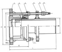 限位伸縮接頭是在AF型法蘭松套補償接頭的基礎上增設限位螺柱而成,最大伸縮量處用雙螺母鎖定,補償因熱脹冷縮和地基沉降引起的管線軸向位移及撓曲和偏心,從而保護閥門的設備。根據連接方式的不同分為單法蘭限位伸縮接頭和雙法蘭限位伸縮接頭。